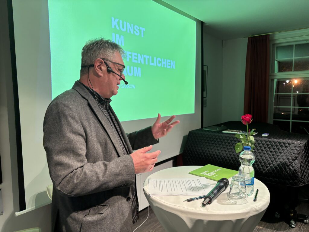 Das Zepter am Premiere-Abend übernahm mit einem anschaulichen, kurzweiligen Vortrag der in Fürstenwalde lebende Diplom-Kulturwissenschaftler Frank Drömert, der bereits Zusammenfassungen zur öffentlichen Kunst in Fürstenwalde und Frankfurt (Oder) publiziert hat. Drömert gilt auch bei der Saarower Ausgabe als der Ideengeber, der gemeinsam mit seinem Projektteam, zu dem neben Steffi Berthold die ebenfalls in Bad Saarow lebende Kunsthistorikerin Ute Mohrmann, die Illustratorin Gertrud Zucker und der Fotograf Andreas Labes gehörten.