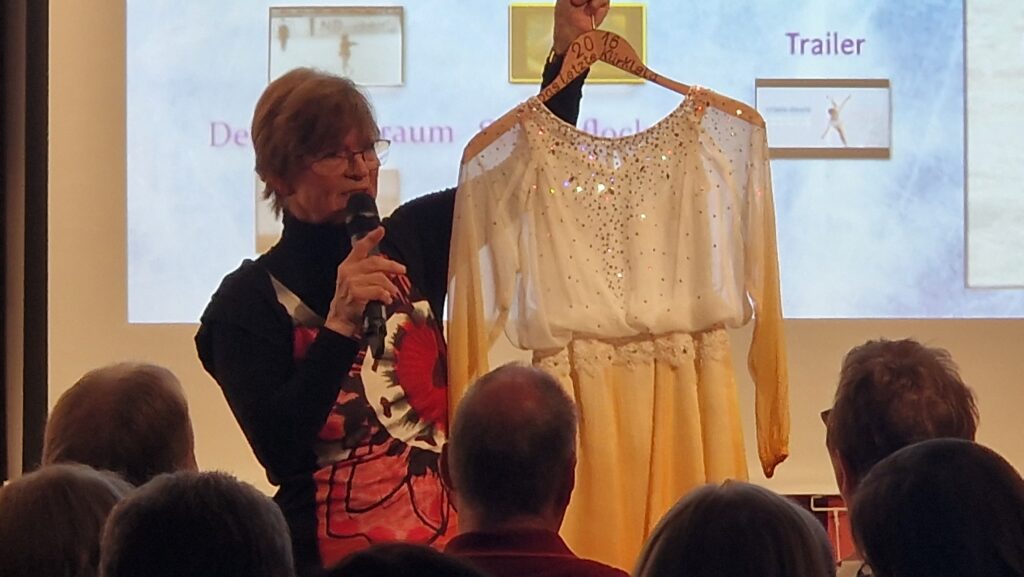 Auch über andere wichtige Wegbegleiter erzählte Frau Stüber-Errath. Besonderer Dank galt natürlich ihrer Mutter, die die zahlreichen Kostüme nähte und der Trainerin Inge Wischnewski, die das Talent des Mädchens formte und bis zur 2-maligen Europameisterin und Weltmeisterin 1974 führte.