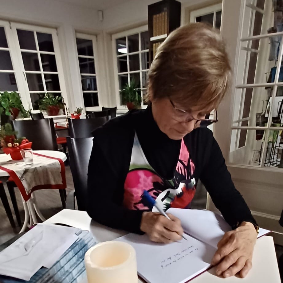 Viele Geschichten, z. B. über ihre Fernsehkarriere, die Vorbereitung und den Auftritt bei der „Nacht der Prominenten“ am Trapez, den Film mit ihrem Jugendschwarm Frank Schöbel, die Arbeit zum Spielfilm „Die Anfängerin“ sind Beispiele für ein anderes Lebensmotto „Erkunde und akzeptiere deine Grenzen“. Die Zeit war schnell vorbei. Wer mehr wissen wollte, konnte sich ihr Buch kaufen, das sie dann auch gern signierte. Mit herzlichen Worten und Dank an das Team vom Scharwenkahaus für die Einladung und die liebevolle Betreuung verabschiedete sich Frau Stüber-Errath.