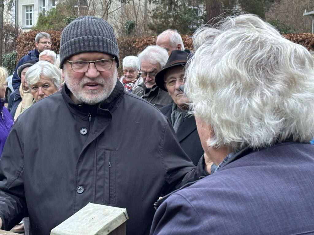 Den passenden Rahmen für die Enthüllungsfeier lieferten die Fürstenwalder Stadtbläser mit Heiko Reichmuth, Joey Henkel, Klaus Zippan und Wolfgang Mertke, die zusätzlich zum traditionellen Adventskonzert vom Balkon auch im Vorgarten spielten und dabei die „Märkische Heide“ intonierten. Was hätte wohl Scharwenka dazu gesagt ….